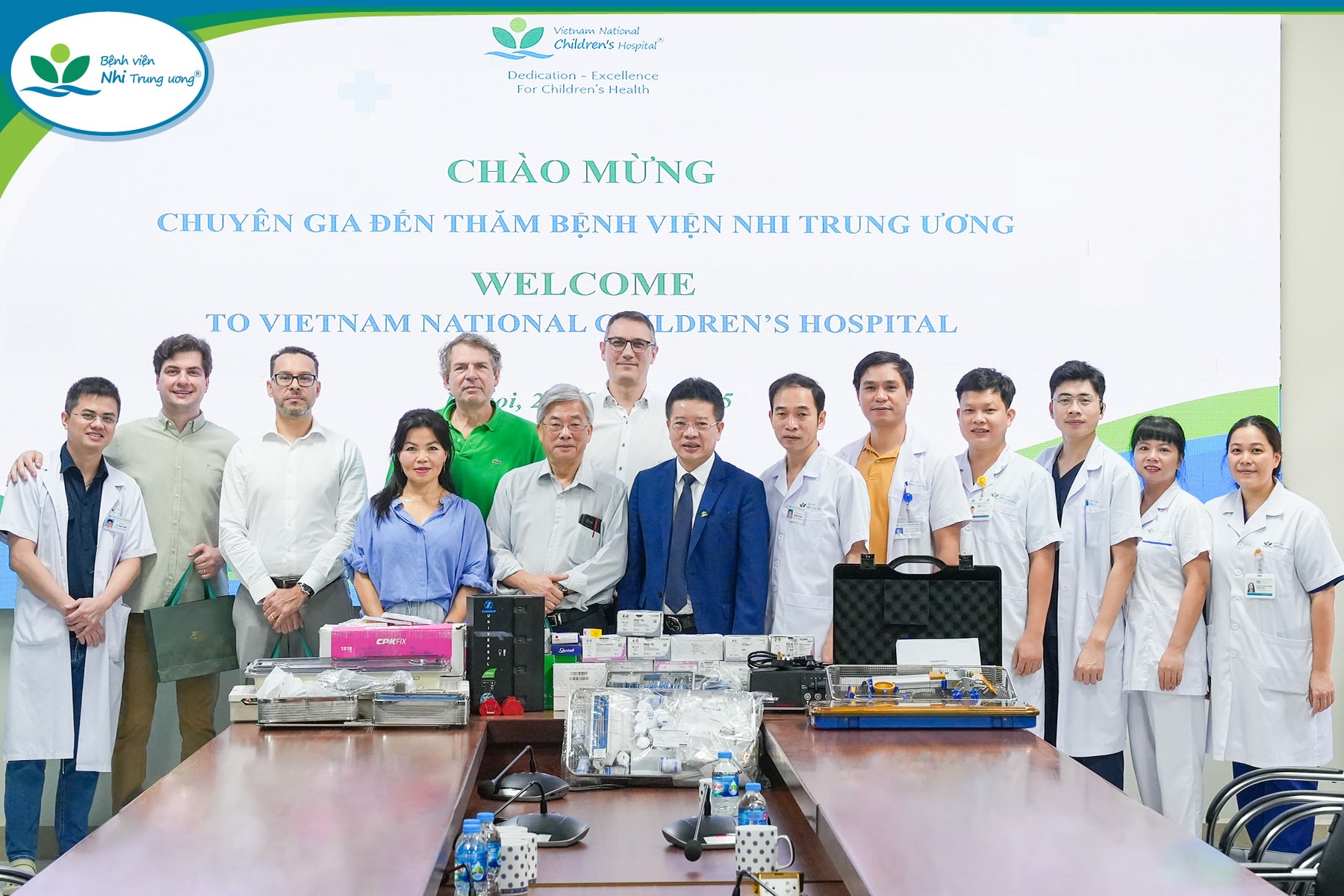 Đồng thời, đoàn chuyên gia đã trao tặng nhiều thiết bị y tế hiện đại trong lĩnh vực Chỉnh hình như: máy khoan cưa điện, máy garo, dụng cụ vi phẫu; đinh, nẹp vít; chỉ khâu, băng nẹp các loại, góp phần nâng cao năng lực điều trị cho Bệnh viện Nhi Trung ương.