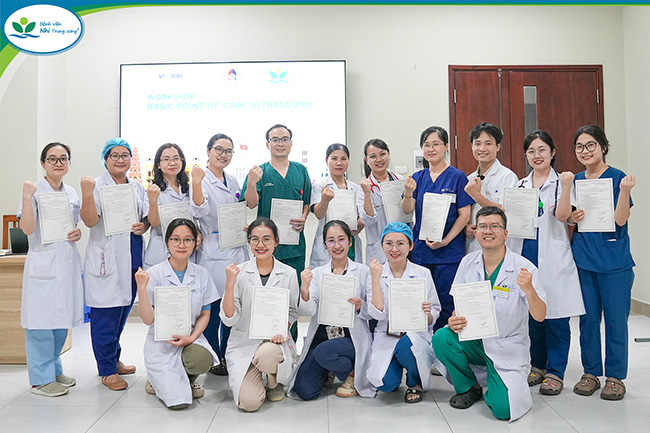 Sau thời gian học tập nghiêm túc và hăng say, 27/30 học viên đã vượt qua bài đánh giá và được trao chứng chỉ “Siêu âm trong hồi sức cấp cứu Nhi khoa cơ bản”