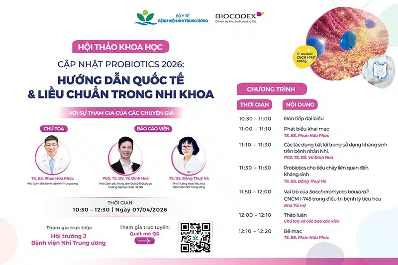 Viện Đào tạo và Nghiên cứu Sức khỏe Trẻ em – Bệnh viện Nhi Trung ương xin trân trọng thông báo và kính mời các cán bộ, nhân viên y tế tham dự Hội thảo khoa học: Cập nhật Probiotics 2026: Hướng dẫn quốc tế và liều chuẩn trong Nhi khoa.