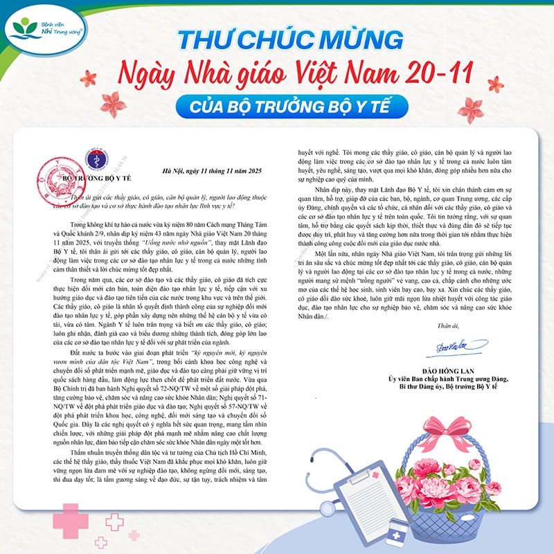 Trang chủ » Tin Tiêu Điểm » Thư chúc mừng Ngày Nhà giáo Việt Nam 20-11 của Bộ trưởng Bộ Y tế