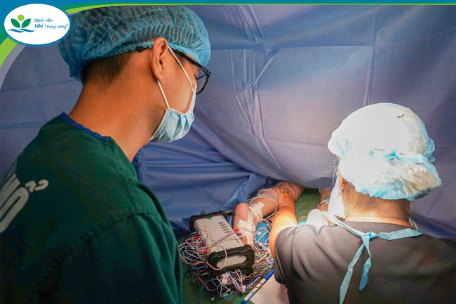 Bệnh nhi được đặt điện sinh lý để tìm dây thần kinh gây co cứng