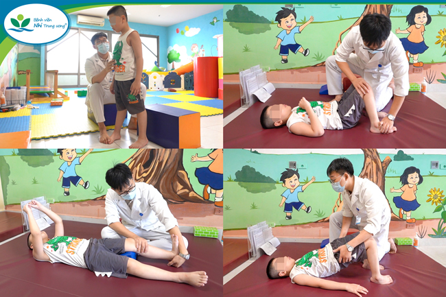 Bệnh nhi được tập phục hồi chức năng để tăng khả năng vận động