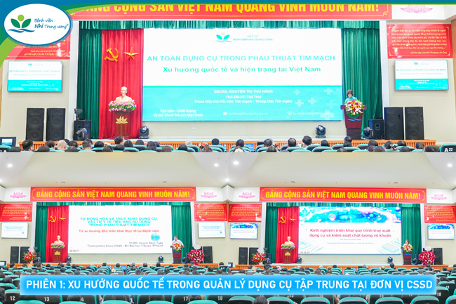 Thứ ba, phiên khoa học cuối cùng tập trung giới thiệu mô hình quản lý dụng cụ và ứng dụng công nghệ thông tin tại khoa Khử khuẩn – Tiệt khuẩn (CSSD) của Bệnh viện Nhi Trung ương. Đặc biệt là ứng dụng công nghệ thông tin và chuyển đổi số trong quản lý tài sản và vòng đời dụng cụ phẫu thuật, hướng tới minh bạch hóa quy trình, nâng cao hiệu quả vận hành và tiệm cận các tiêu chuẩn quốc tế, giúp các đơn vị tham dự có thêm cơ sở tham khảo và vận dụng linh hoạt, phù hợp với điều kiện và nguồn lực thực tế của đơn vị.