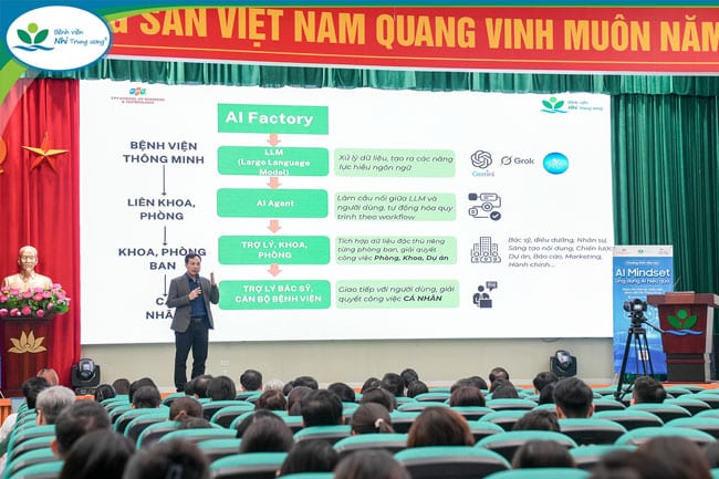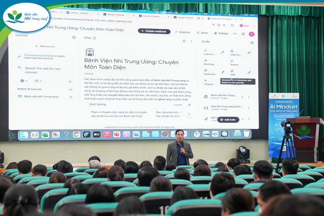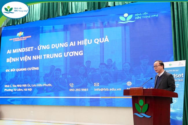 Chiều ngày 05/12/2025, Bệnh viện Nhi Trung ương đã phối hợp với Viện Quản trị & Công nghệ FSB – Đại học FPT tổ chức tập huấn chuyên đề AI Mindset – Ứng dụng AI (trí tuệ nhân tạo) hiệu quả dành cho viên chức, người lao động.