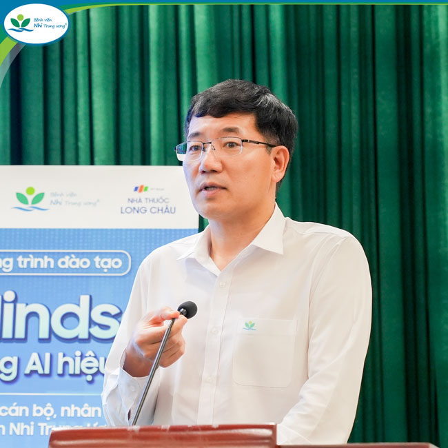 Phát biểu tại buổi tập huấn, GS.TS Trần Minh Điển – Giám đốc Bệnh viện Nhi Trung ương nhấn mạnh: Ngành y tế toàn cầu và trong nước đang bước vào giai đoạn chuyển đổi mạnh mẽ. Trí tuệ nhân tạo (AI) không còn là xu hướng tương lai mà là công cụ thiết yếu hiện tại. Bệnh viện Nhi Trung ương với vai trò tuyến cao nhất về Nhi khoa cần nắm bắt cơ hội để nâng cao chất lượng khám chữa bệnh, tăng cường an toàn cho người bệnh và tối ưu hóa vận hành và phát triển khoa học công nghệ.