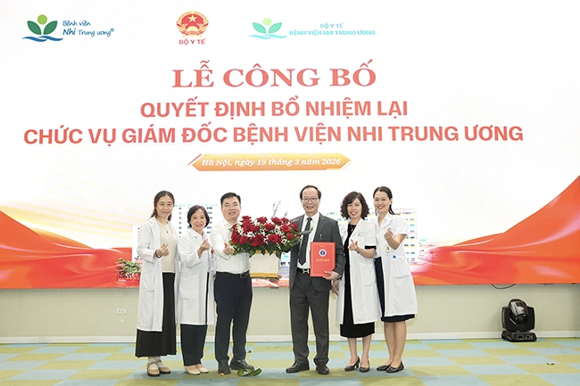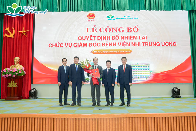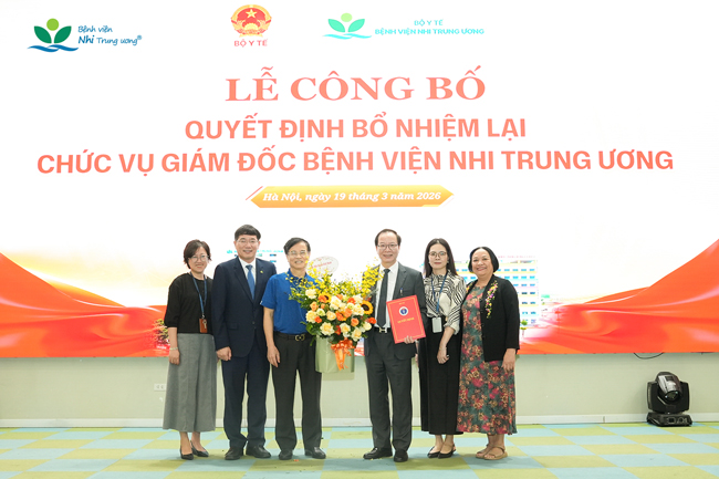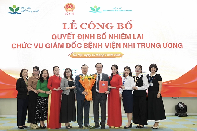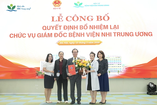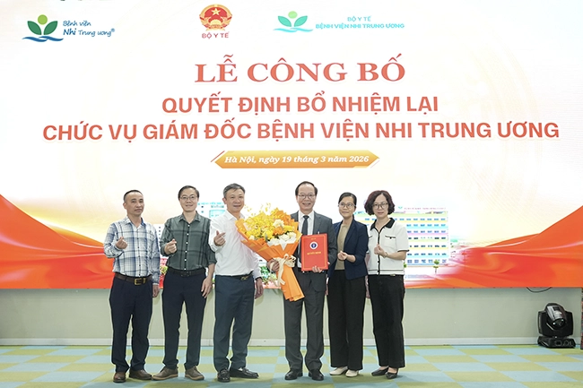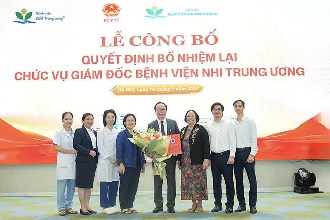 Ngày 19/3/2026, Bộ Y tế đã tổ chức Lễ công bố Quyết định của Bộ trưởng Bộ Y tế về việc bổ nhiệm lại GS.TS Trần Minh Điển giữ chức vụ Giám đốc Bệnh viện Nhi Trung ương trong nhiệm kỳ tiếp theo.