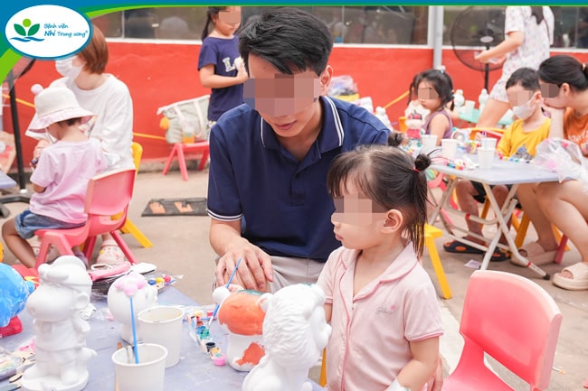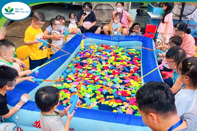 Cha mẹ và các bệnh nhi hào hứng nhận những phần quà đặc sắc và tham gia các trò chơi thú vị