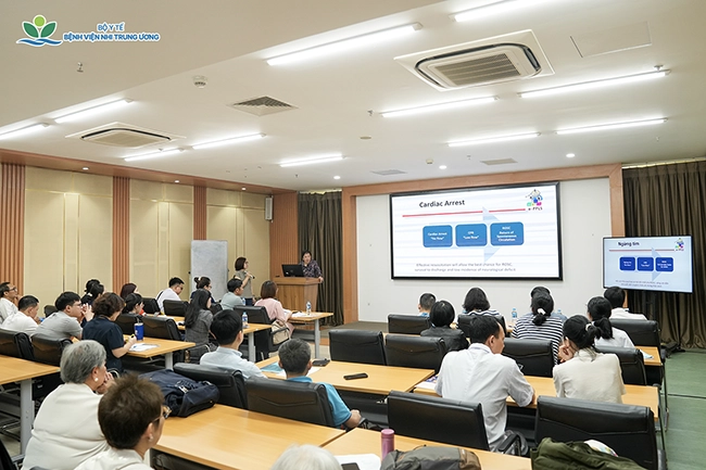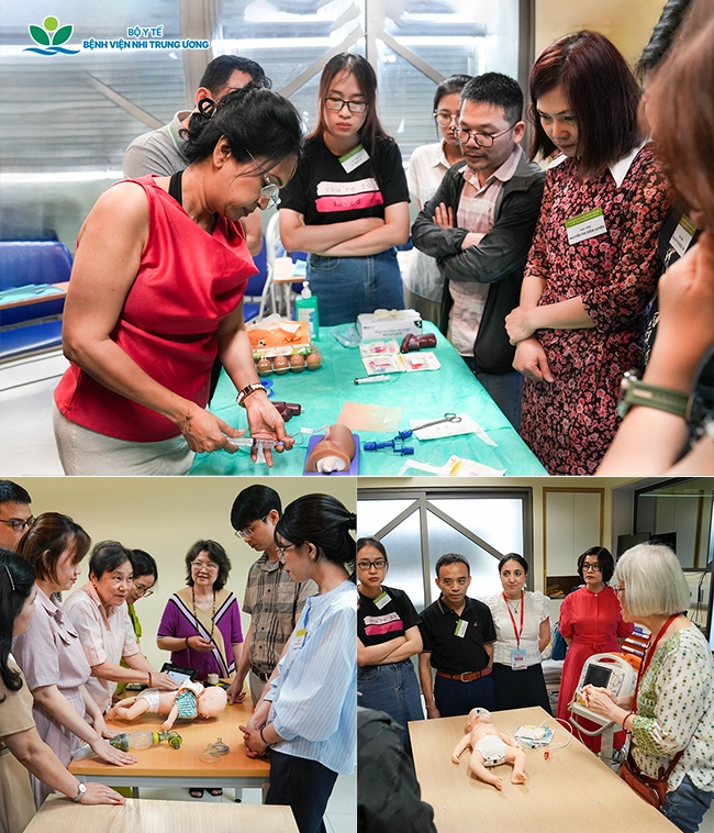 Các kỹ năng mềm cũng được lồng ghép thông qua các tình huống nhập vai và thảo luận nhóm, giúp học viên rèn luyện phối hợp trong cấp cứu, quản lý rối loạn nhịp tim và kỹ năng giao tiếp khi thông báo tin xấu cho gia đình bệnh nhi.