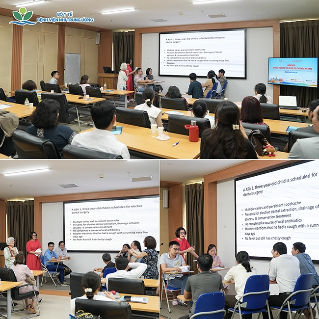 Trong khuôn khổ Hội nghị Gây mê Hồi sức Nhi khoa toàn quốc lần thứ nhất diễn ra từ ngày 03–05/4/2026 tại Bệnh viện Nhi Trung ương, chương trình workshop với chủ đề “An toàn trong gây mê (Safe PAN), Cấp cứu chu phẫu nhi khoa (PPLS) và đào tạo giảng viên tiềm năng (TTT)” đã được tổ chức tại Trung tâm Đào tạo tiền lâm sàng của Bệnh viện.