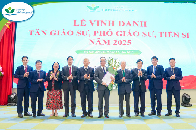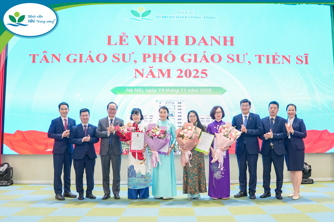 Đúng vào dịp kỷ niệm Ngày Nhà giáo Việt Nam 20/11/2025, Bệnh viện Nhi Trung ương vinh dự và tự hào ghi dấu cột mốc ý nghĩa trong hành trình phát triển chuyên môn, đào tạo và nghiên cứu khoa học, khi Hội đồng Giáo sư Nhà nước vừa công nhận 01 tân Giáo sư và 03 tân Phó Giáo sư của Bệnh viện đạt chuẩn chức danh cao quý. Thêm vào đó, 04 cán bộ của Bệnh viện vừa hoàn thành xuất sắc chương trình đào tạo, được nhận học vị Tiến sĩ.