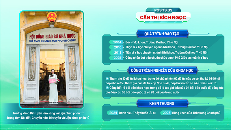 Cùng với đó, niềm tự hào càng được nhân lên khi 03 tân Phó Giáo sư và 04 tân Tiến sĩ của Bệnh viện cũng được vinh danh trong dịp này. Họ là những chuyên gia đầu ngành trong hoạt động chuyên môn, tận tâm với sứ mệnh đào tạo và phát triển nghiên cứu khoa học. Công trình nghiên cứu của các tân Phó Giáo sư, Tiến sĩ đều mang tính ứng dụng thực tiễn, góp phần nâng cao chất lượng chẩn đoán, điều trị. Các thầy cô cũng là người trực tiếp truyền cảm hứng, đào tạo thế hệ bác sĩ tài năng kế cận của chuyên ngành Nhi khoa nước nhà.