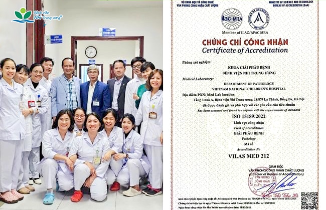 Nhằm đảm bảo độ chính xác, tin cậy và tính chuẩn hóa trong chẩn đoán, Khoa Giải phẫu bệnh luôn chú trọng đầu tư nâng cao chất lượng chuyên môn, quy trình kỹ thuật và quản lý xét nghiệm. Đặc biệt, vào tháng 3/2025, Khoa Giải phẫu bệnh, Bệnh viện Nhi Trung ương chính thức đạt chứng nhận ISO 15189:2022 – tiêu chuẩn quốc tế về chất lượng và năng lực phòng xét nghiệm y tế – với 2 chỉ số được công nhận trong chẩn đoán viêm dạ dày.