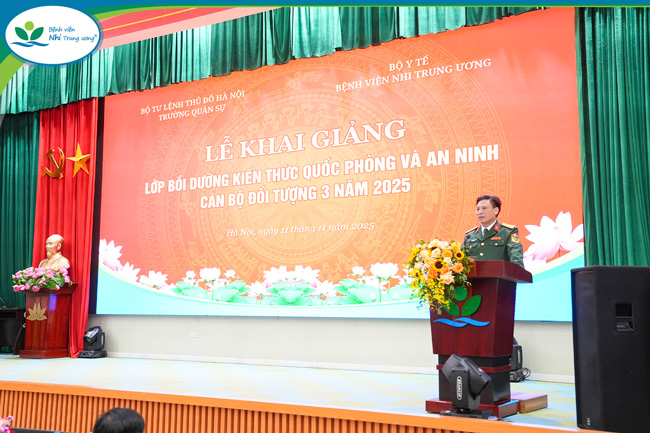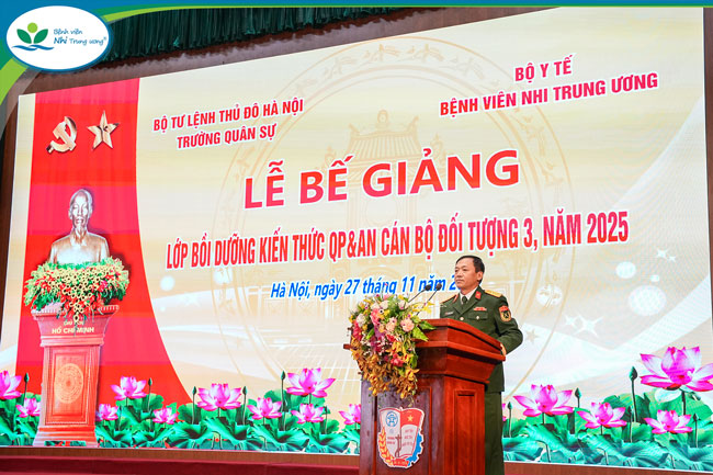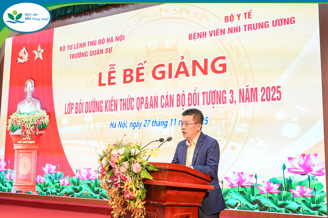 Với mục tiêu xây dựng đội ngũ cán bộ phát triển toàn diện, vừa có trình độ chuyên môn, vừa vững vàng về chính trị, Bệnh viện Nhi Trung ương đã phối hợp với Trường Quân sự - Bộ Tư lệnh Thủ đô Hà Nội tổ chức thành công “Lớp bồi dưỡng kiến thức quốc phòng và an ninh đối tượng 3 năm 2025” cho 92 đảng viên, cán bộ quản lý chủ chốt của Bệnh viện, diễn ra từ ngày 11/11 đến 27/11.