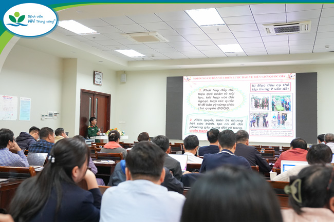 GS.TS Trần Minh Điển – Bí thư Đảng ủy, Giám đốc, Chỉ huy trưởng Ban Chỉ huy Quân sự Bệnh viện Nhi Trung ương nhấn mạnh: Trong bối cảnh yêu cầu bảo đảm an ninh, an toàn trong hoạt động y tế ngày càng cao, việc giúp đội ngũ trưởng, phó khoa phòng – những người trực tiếp quản lý và điều hành, nắm chắc kiến thức nền tảng về quốc phòng, an ninh là điều vô cùng cần thiết. Điều này giúp họ chủ động phòng ngừa rủi ro về chính trị, tư tưởng, an ninh mạng, an ninh con người ngay tại khoa, phòng và trong toàn Bệnh viện.